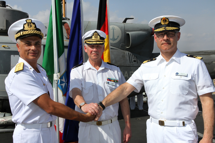 v.l. : Admiral Stefano Barbieri, Admiral Jonas Wikström, Admiral Jan C. Kaack nach der Kommandoübergabe.