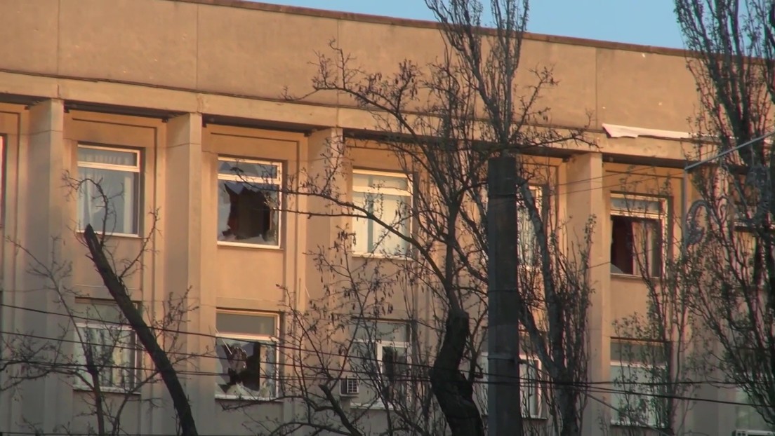 Ein Wohngebäude in Cherson nach einem ukrainischen Beschuss mit Totschka-U-Raketen Bild: Pressedienst des russischen Verteidigungsministeriums / Sputnik