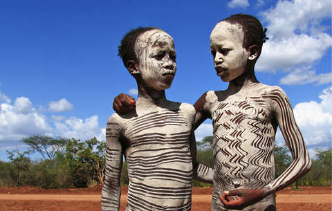 Junge Hamar mit Verzierungen aus weißer Asche. Der Gibe III Damm bedroht ihr Volk. Bild: Magda Rakita/Survival