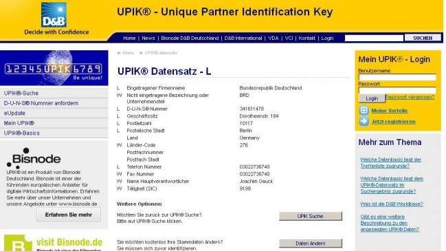 Auszug der Wirtschaftsdatei DUNS, 2013