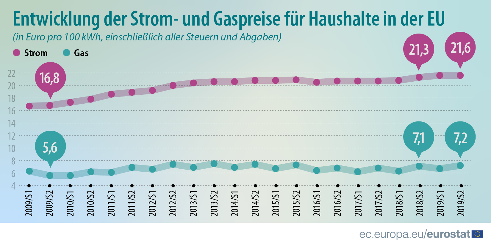 Energiepreise für Haushalte in der EU gegenüber 2018 gestiegen