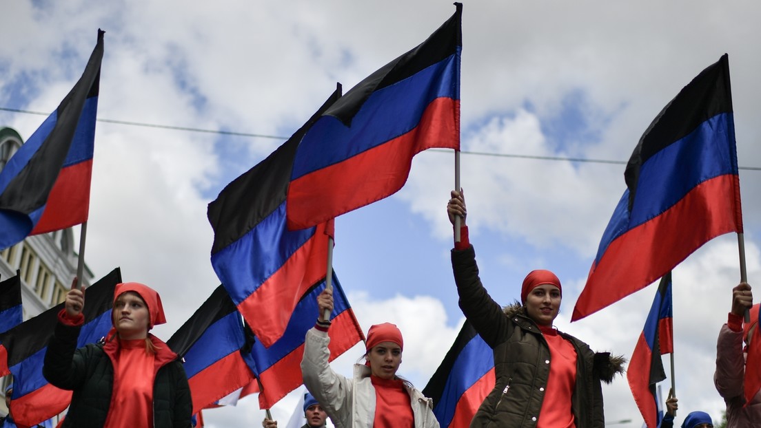DVR-Flaggen in den Händen der Kinder der Republik (Archivbild) Bild: Konstantin Michaltschweski / Sputnik