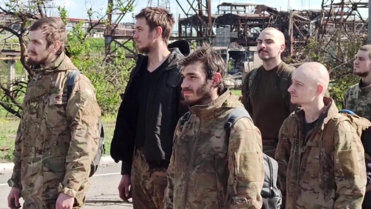 Ukrainische Militärangehörige, die sich im Asow-Stahl-Werk in russische Kriegsgefangenschaft ergeben hatten. Einige von ihnen gelten offiziell als vermisst. Bild: Pressedienst des Verteidigungsministeriums der Russischen Föderation / Sputnik