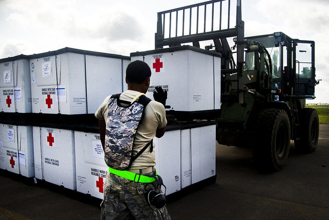 Ausladen von Hilfsgütern im Ebola Gebiet. Bild: US Army Africa posted on Flickr