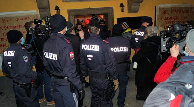 In Kompaniestärke rückte die Polizei im Jänner an Bild: Wochenblick / Eigenes Werk