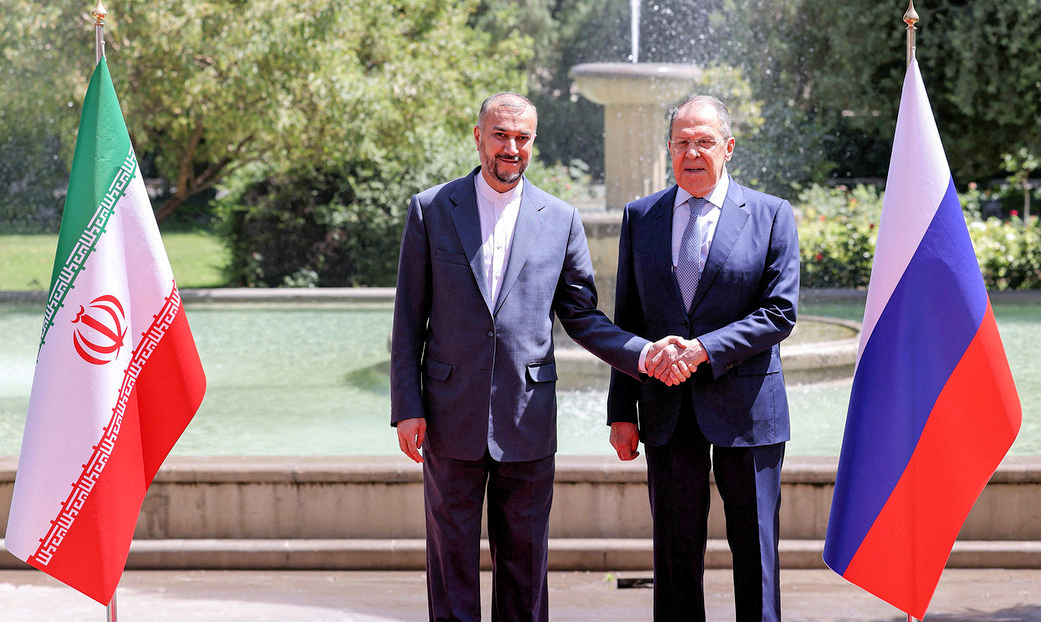 Irans Außenminister Hossein Amir-Abdollahian empfängt seinen russischen Amtskollegen Sergei Lawrow (r.) am 23. Juni 2022 im Hauptquartier des Außenministeriums in der iranischen Hauptstadt Teheran.
