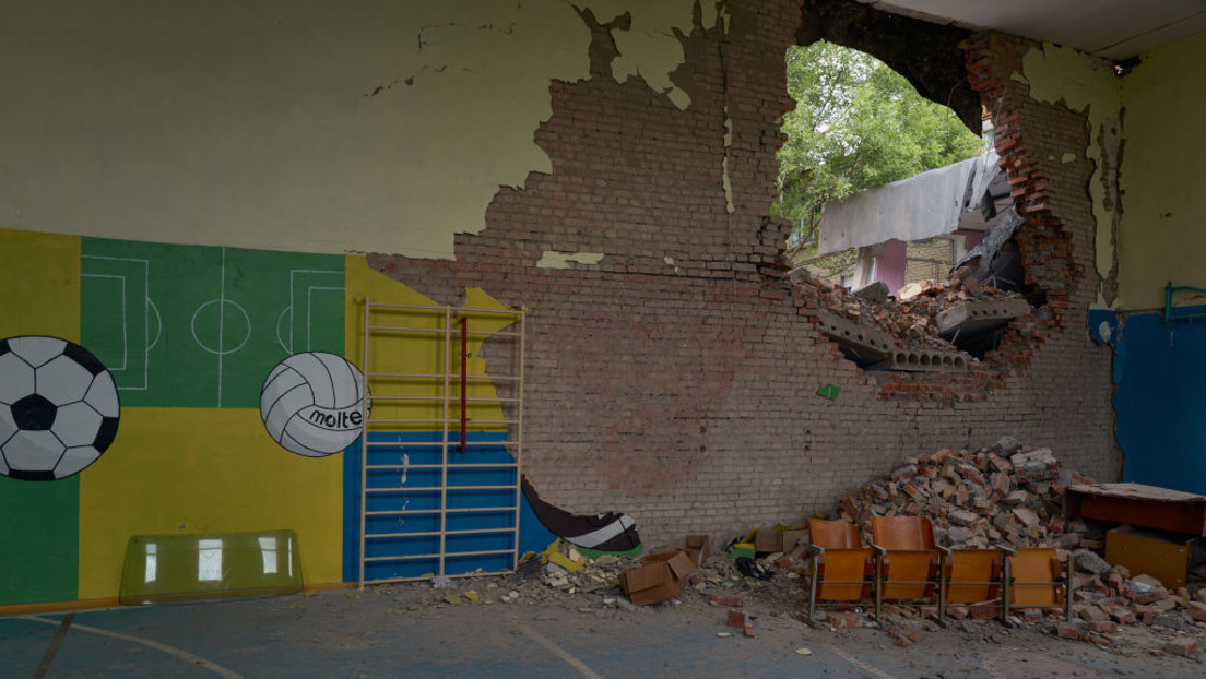 Symbolbild: Zerstörte Turnhalle in einer Schule von Nikolajew, 27. Juni 2022 Bild: Pierre Crom/Getty Images / Gettyimages.ru / RT