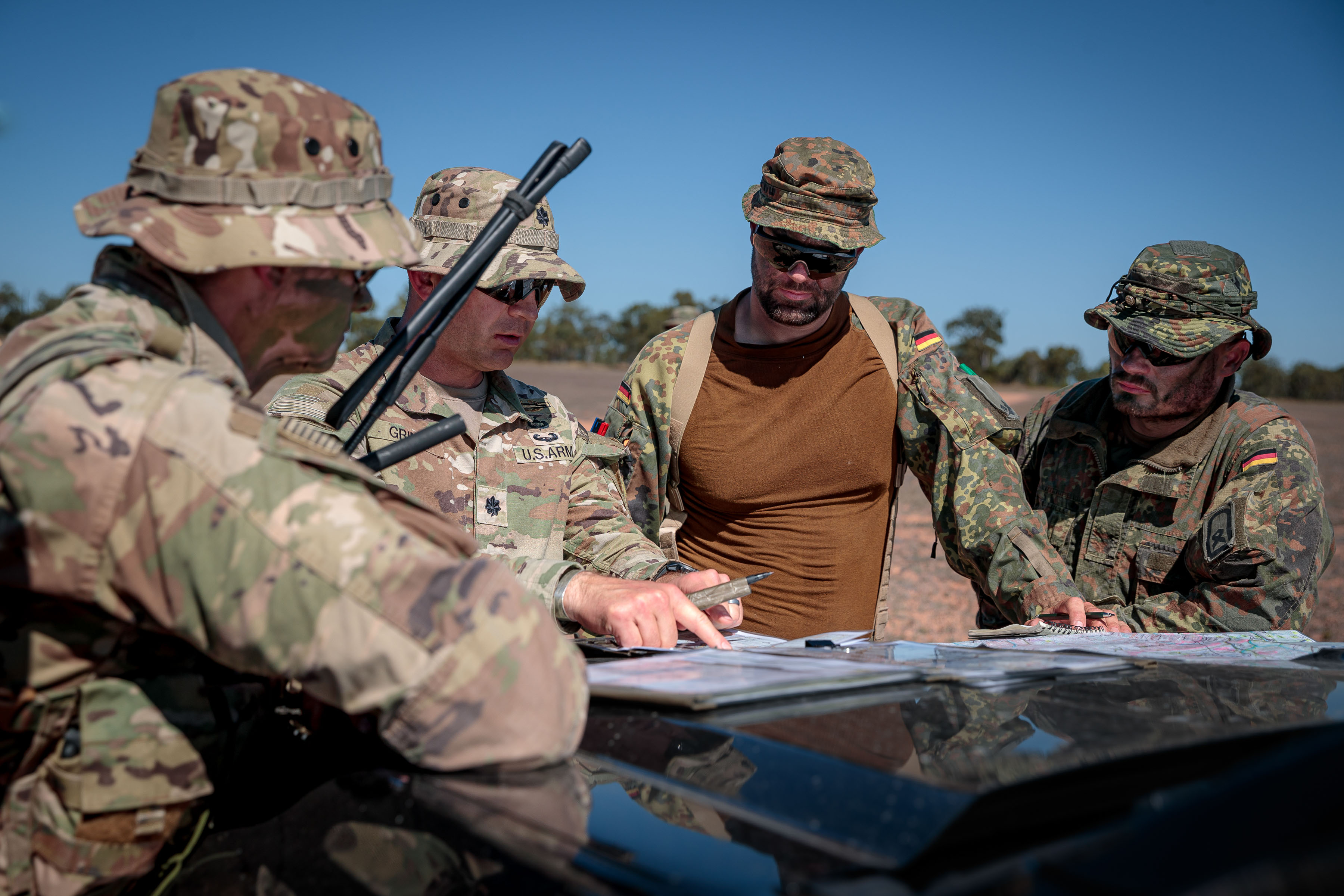 Abstimmungen zwischen deutschen Soldaten vom Fallschirmjägerregiment 26 und Angehörigen der 11th Airborne Division der US Army vor dem Angriff / Weiterer Text über ots und www.presseportal.de/nr/127975 / Die Verwendung dieses Bildes für redaktionelle Zwecke ist unter Beachtung aller mitgeteilten Nutzungsbedingungen zulässig und dann auch honorarfrei. Veröffentlichung ausschließlich mit Bildrechte-Hinweis. Bildrechte: Bundeswehr/Marco Dorow Fotograf: Marco Dorow