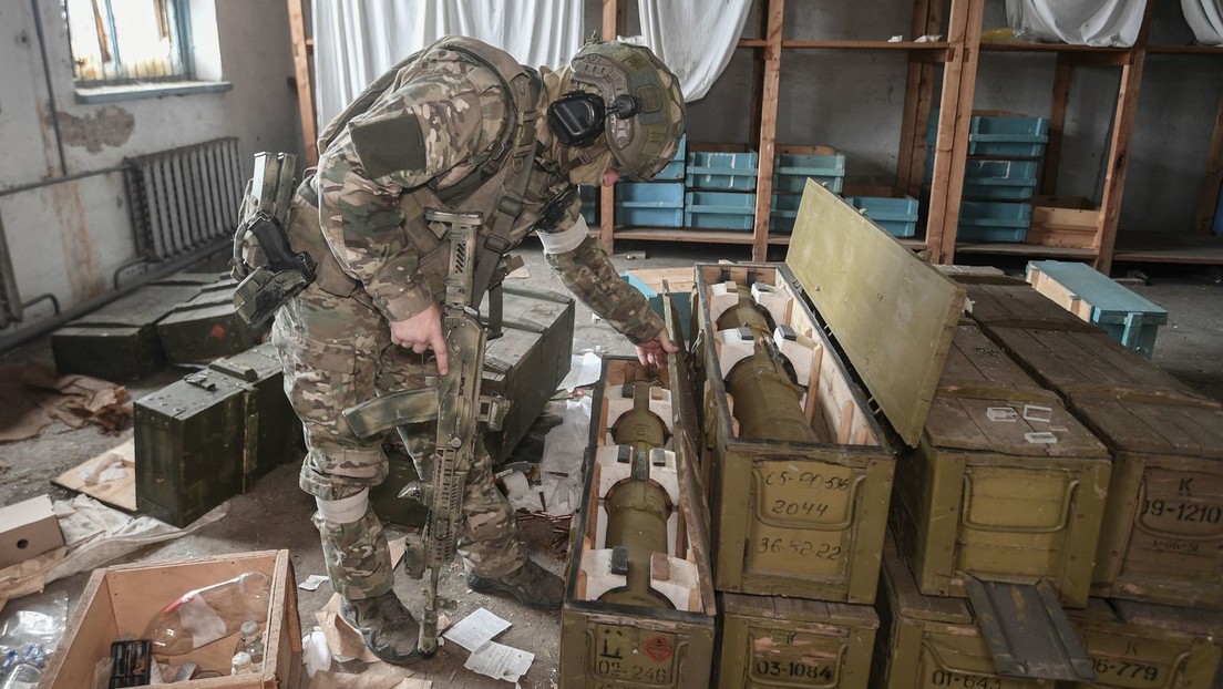 Ein russischer Soldat inspiziert von ukrainischen Truppen zurückgelassene Munition, August 2022 (Symbolbild) Bild: Sputnik / Konstantin Mihalchevskiy/Sputnik