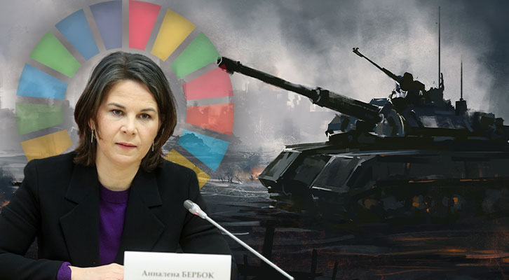 Bild: Hintergrund: Freepik; Baerbock: Kmu.gov.ua, Wikimedia Commons, CC BY 4.0; Komposition: Wochenblick / Eigenes Werk