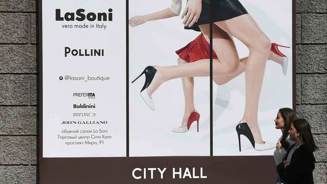 Symbolbild: Ein Werbeplakat in der russischen Stadt Krasnojarsk Bild: Sputnik / Ilja Naimuschin