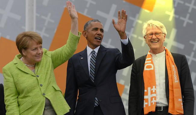 Heinrich Bedford-Strohm, Angela Merkel und Barak Obama (2017) (Symbolbild)