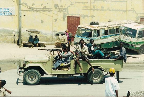 Bewaffnete auf einem Technical in Mogadischu. Bild: CT Snow from Hsinchu, Taiwan