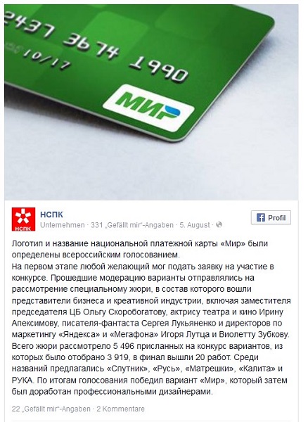 Bild: Screenshot "Facebook" Profil НСПК