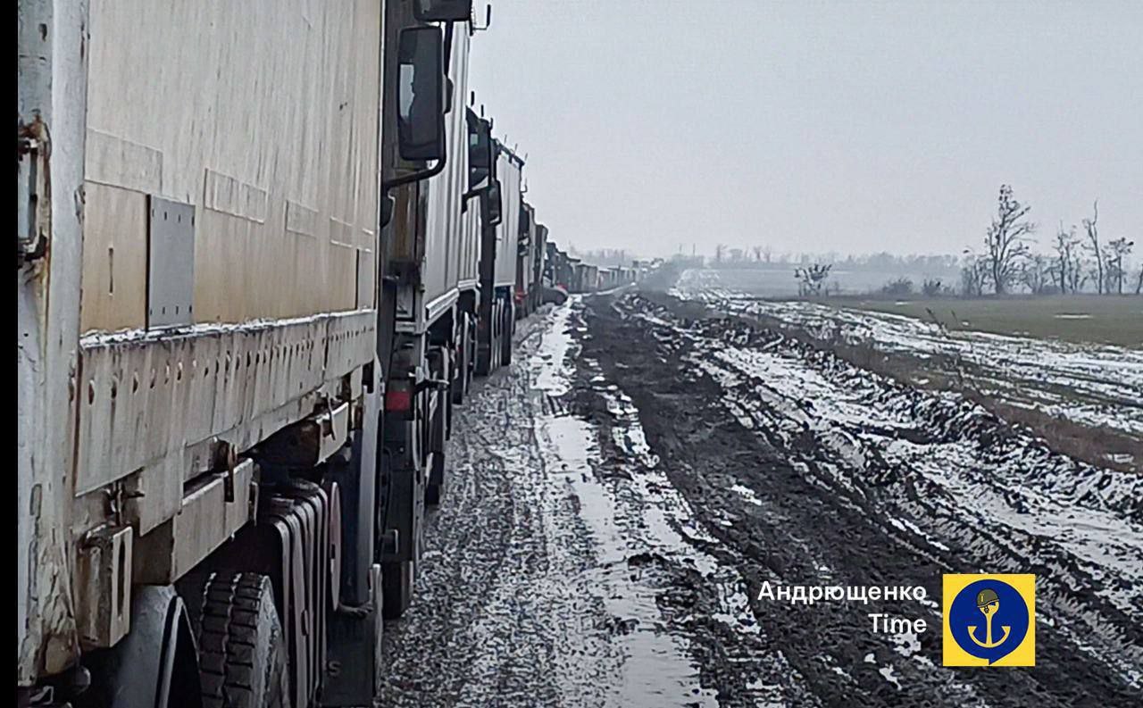 Situation an der Straße nach Berdjansk, Mitte Februar 2023 (Screenshot) Bild: https://t.me/RVvoenkor/38501?single / RT
