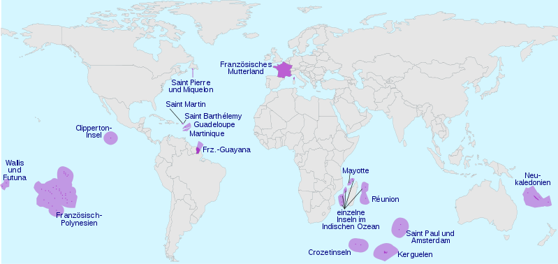 Die Französische Republik (Frankreich) mitsamt den Überseegebieten