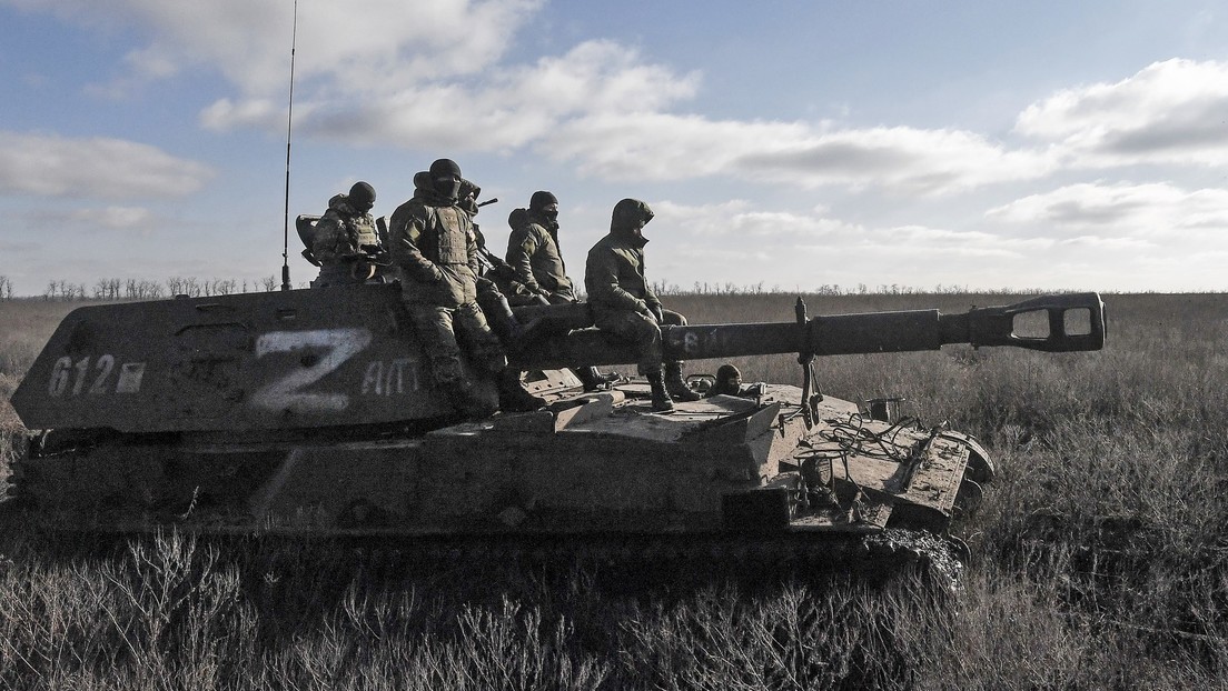 Russische Soldaten auf einer selbstfahrenden Haubitze 2SZ Akatsija in Richtung Saporoschje (Dezember 2022) Bild: Sputnik / Konstantin Michaltchewskij