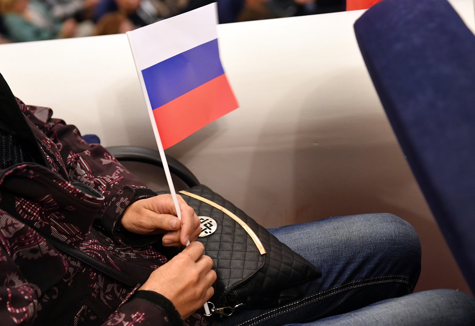 Auf dem Archivbild: Eine Einwohnerin von Saparoschje hält eine russische Flagge Bild: RIA Nowosti / Sputnik