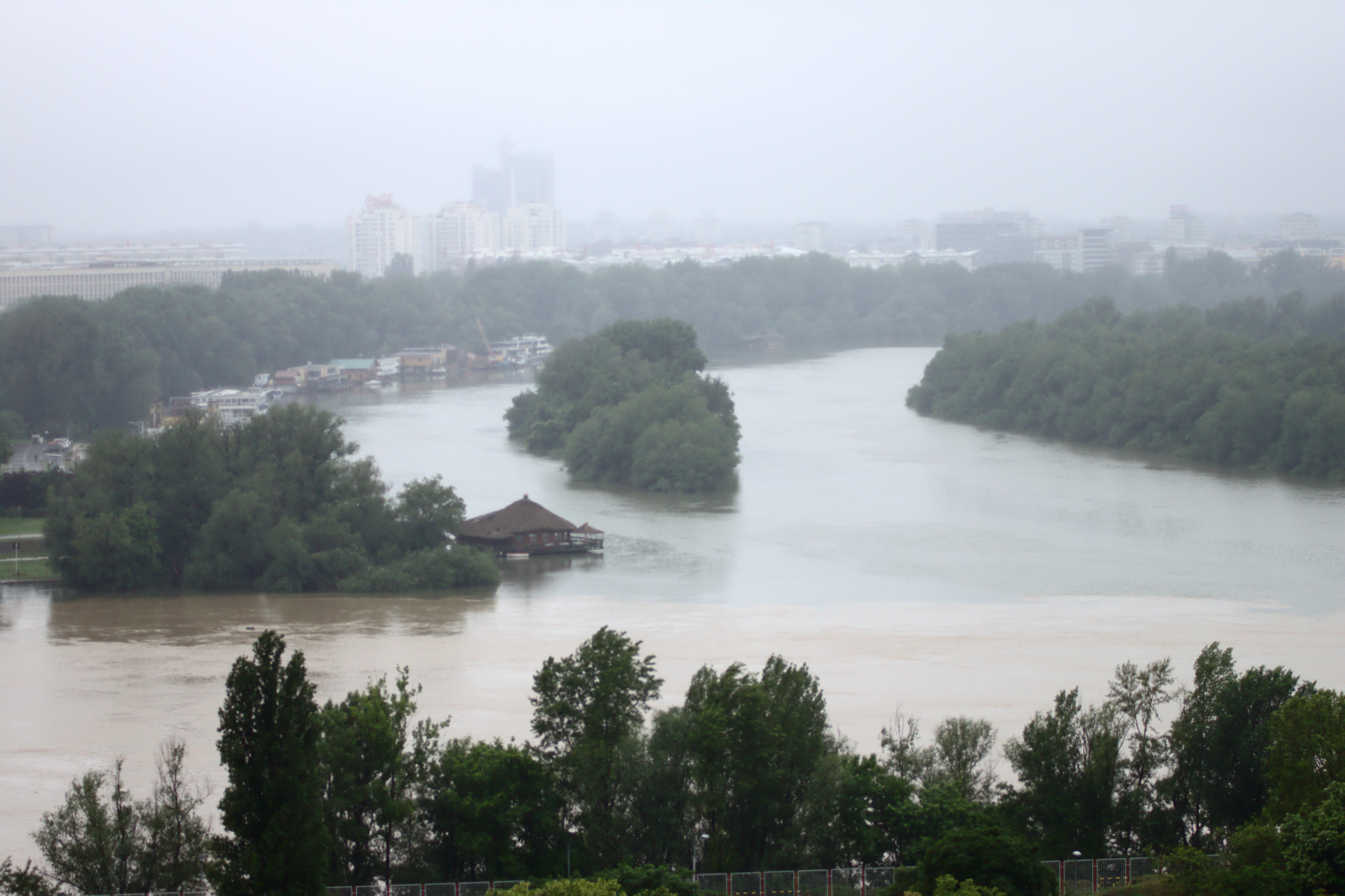 Hochwasser: Donau–Save-Zusammenfluss in Belgrad am Morgen des 17. Mai 2014