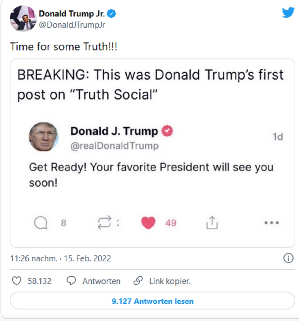 Trump postet ersten Post auf seiner Truth-Social-Plattform