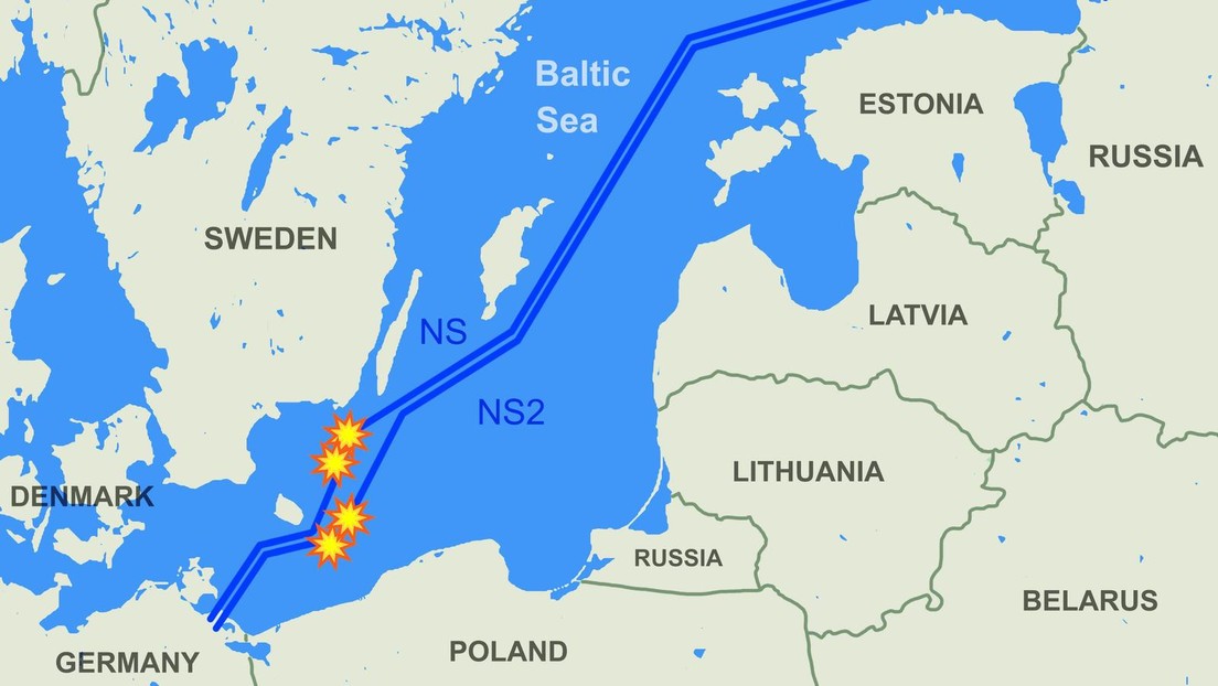 Die Lecks an den Nord-Stream-Pipelines auf einer Karte (Symbolbild)
