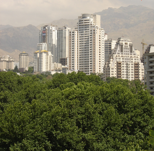 Berge des Elburs über dem Neubaugebiet von Elahiyeh im Iran