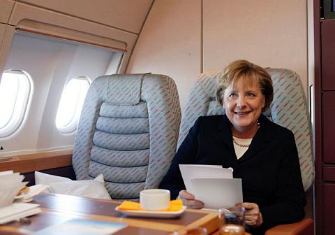 Auf Dienstreisen nutzt Bundeskanzlerin Merkel die Zeit im Flugzeug, um Unterlagen durchzuarbeiten. Bild: angela-merkel.de - Laurence Chaperon