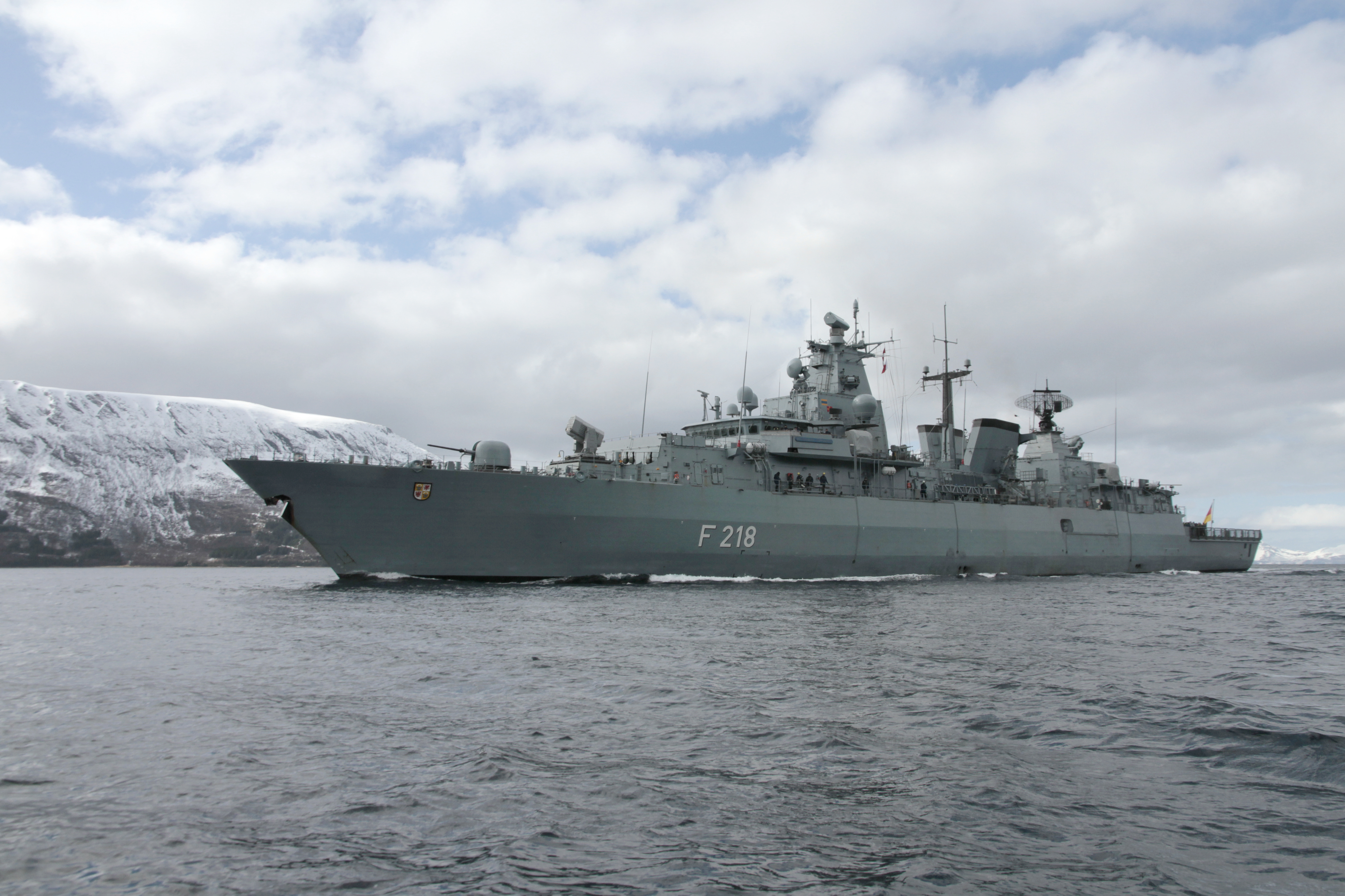 Fregatte F218 Mecklenburg-Vorpommern in den norwegischen Fjorden im Rahmen der NATO-Übung Andoya in Norwegen, am 23.04.2016.