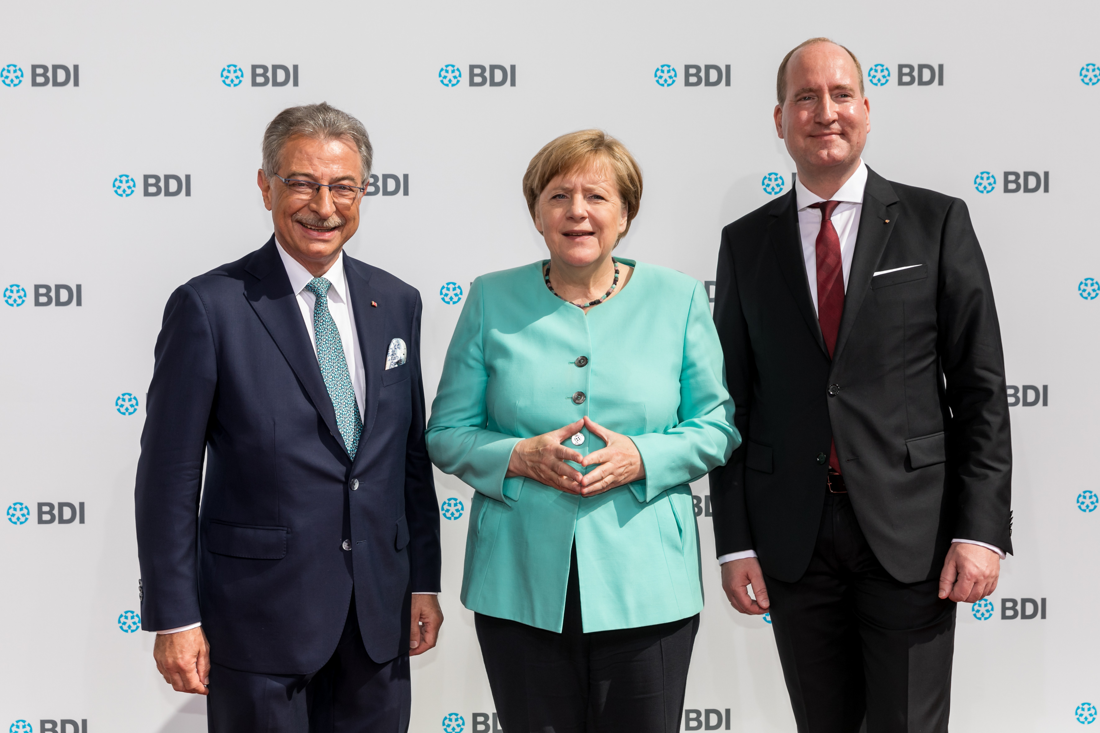 BDi-Präsident Kempf, Bundeskanzlerin Merkel, BDI-Hauptgeschäftsführer Lang beim Tag der Deutschen Industrie 2017
