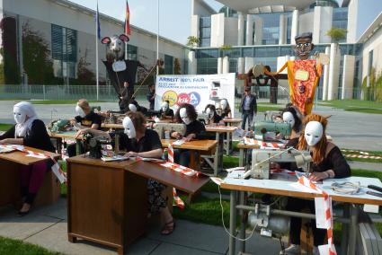 Zurück zu Vor dem Bundeskanzleramt: Protest für gerechtere Arbeitsbedingungen in der weltweiten Textilindustrie