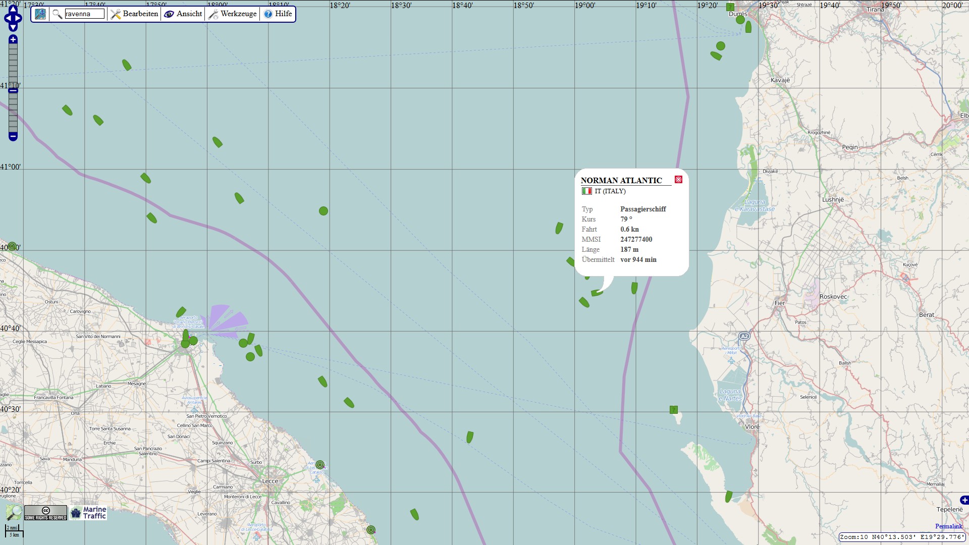 Norman Atlantic: AIS-Position am 28. Dezember 2014aktuelle AIS-Positionen