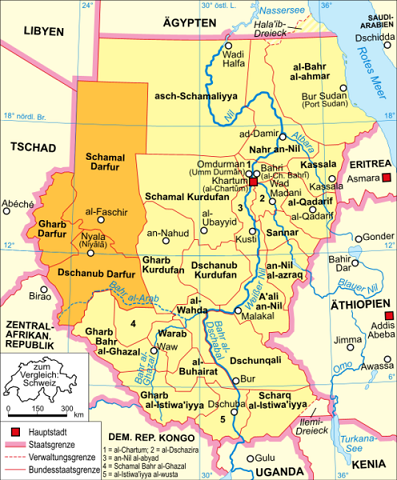Politische Karte des Sudan (Region Darfur). Bild: Domenico-de-ga aus de.wikipedia.org