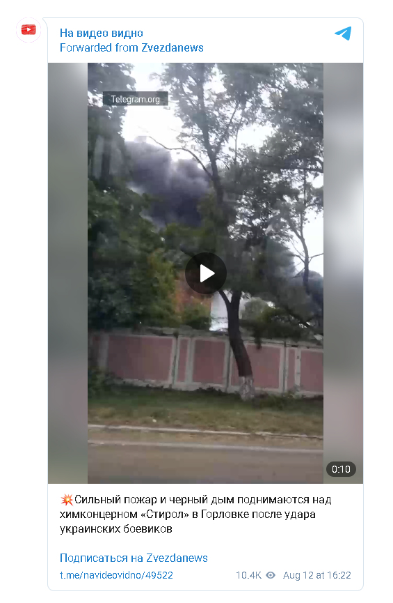 Zurück zu Ukrainische Streitkräfte nehmen Chemiefabrik "Stirol" in Gorlowka unter Feuer