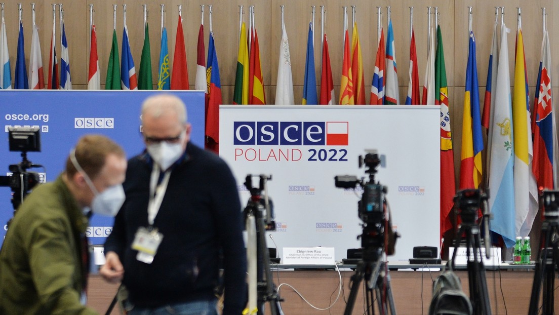 Das Pressezentrum vor dem Beginn der Sitzung des Ständigen Rats der OSZE unter dem Vorsitz Polens, die in Wien am 13. Januar 2022 stattfand. Bild: Sputnik / Aleksei Witwizki