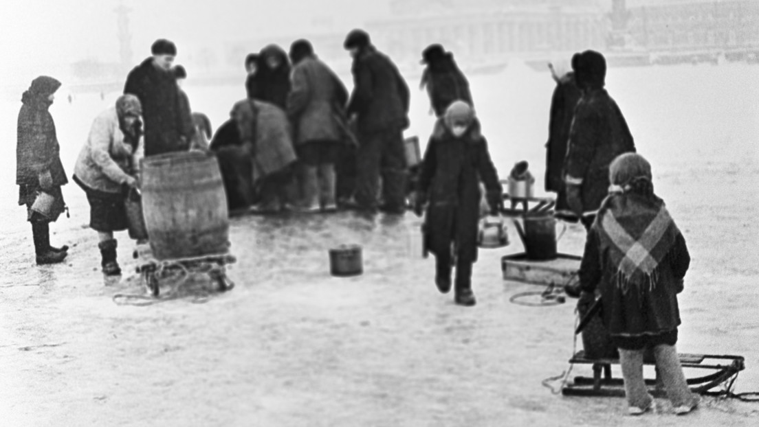 Archivbild: Bewohner des blockierten Leningrads holen Wasser aus einem Eisloch auf der Newa. 11. Januar des Jahres 1942.