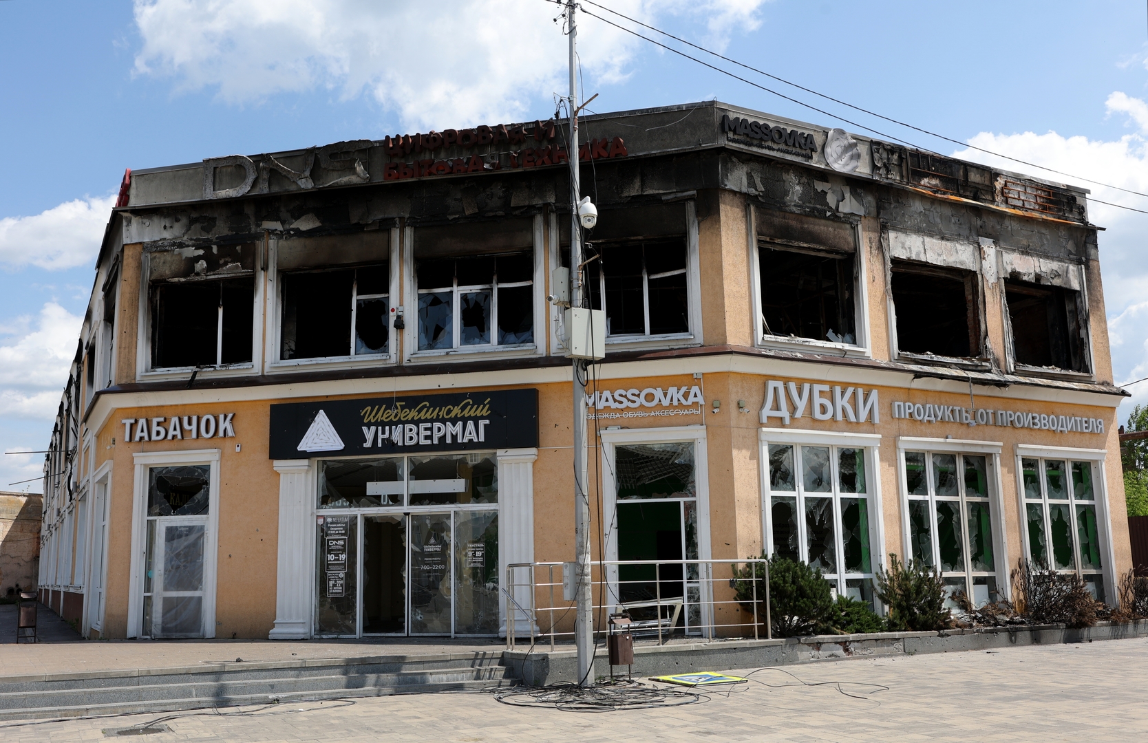 Archivbild: Ein beschädigtes Einkaufszentrum in der Stadt Schebekino im russischen Grenzgebiet Belgorod, 21. Juni 2023. Bild: ANTON WERGUN / Sputnik