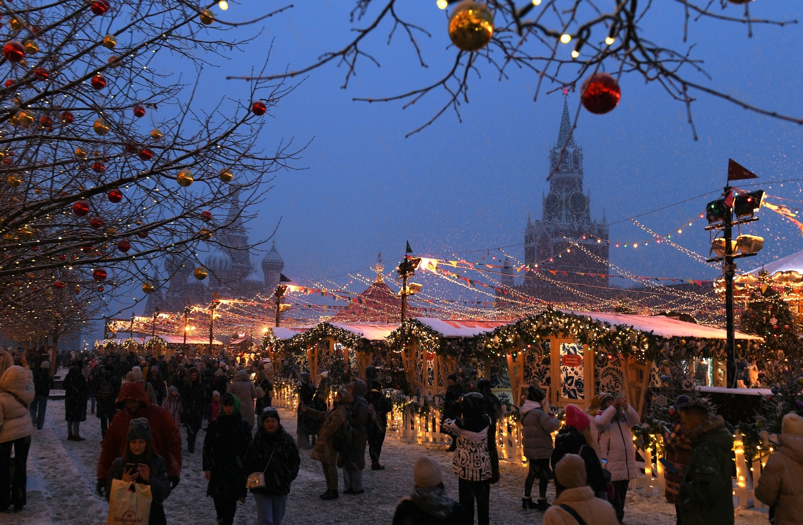 Archivbild: Menschen spazieren auf dem für Silvester geschmückten Roten Platz. Bild: Vladimir Vyatkin / Sputnik
