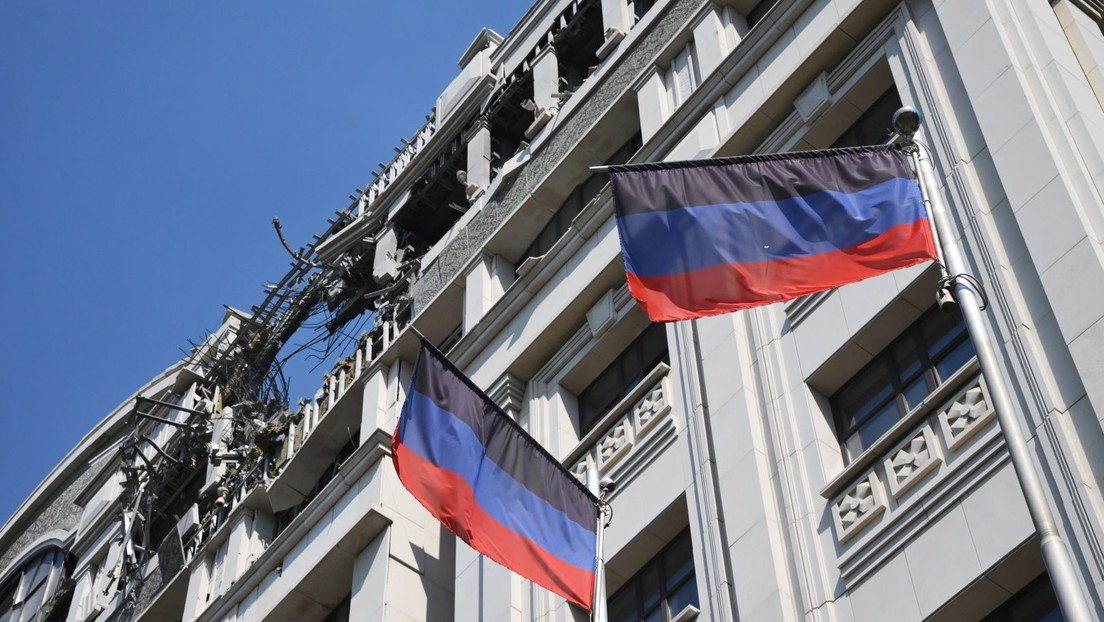 Der Amtssitz des Chefs der Volksrepublik Donezk wurde wie zahlreiche andere Gebäude in Donezk durch ukrainischen Beschuss beschädigt, 23. August 2022