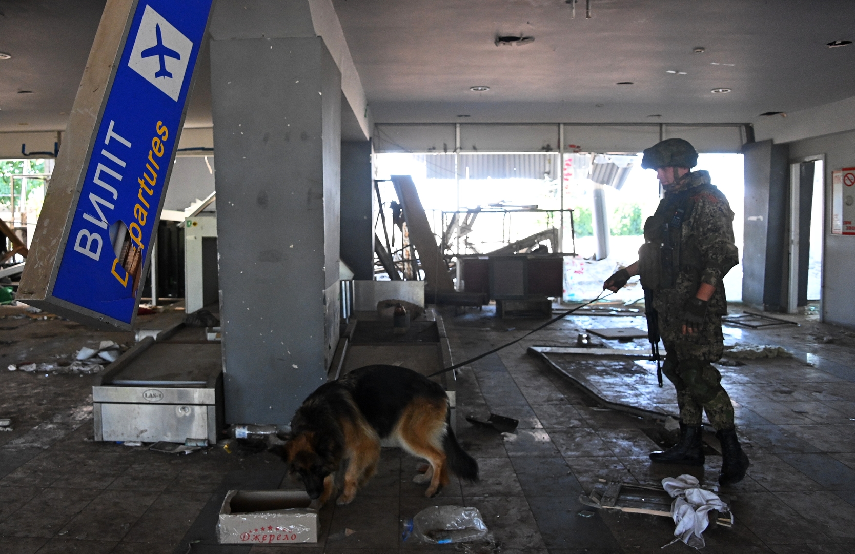 Ein russischer Soldat bei der Räumung von Minen im Mariupoler Flughafen (2023) Bild: Sputnik