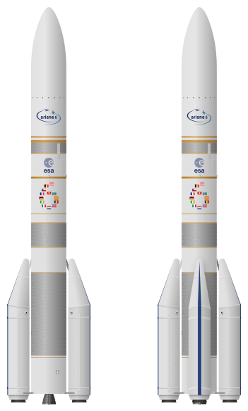 Geplante Ariane 6 in den Konfigurationen Ariane 62 mit zwei und Ariane 64 mit vier Feststoffboostern