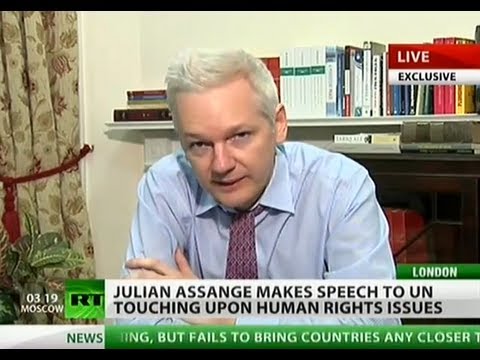 Screenshot aus dem Youtube Video "Julian Assange addresses UN on human rights"