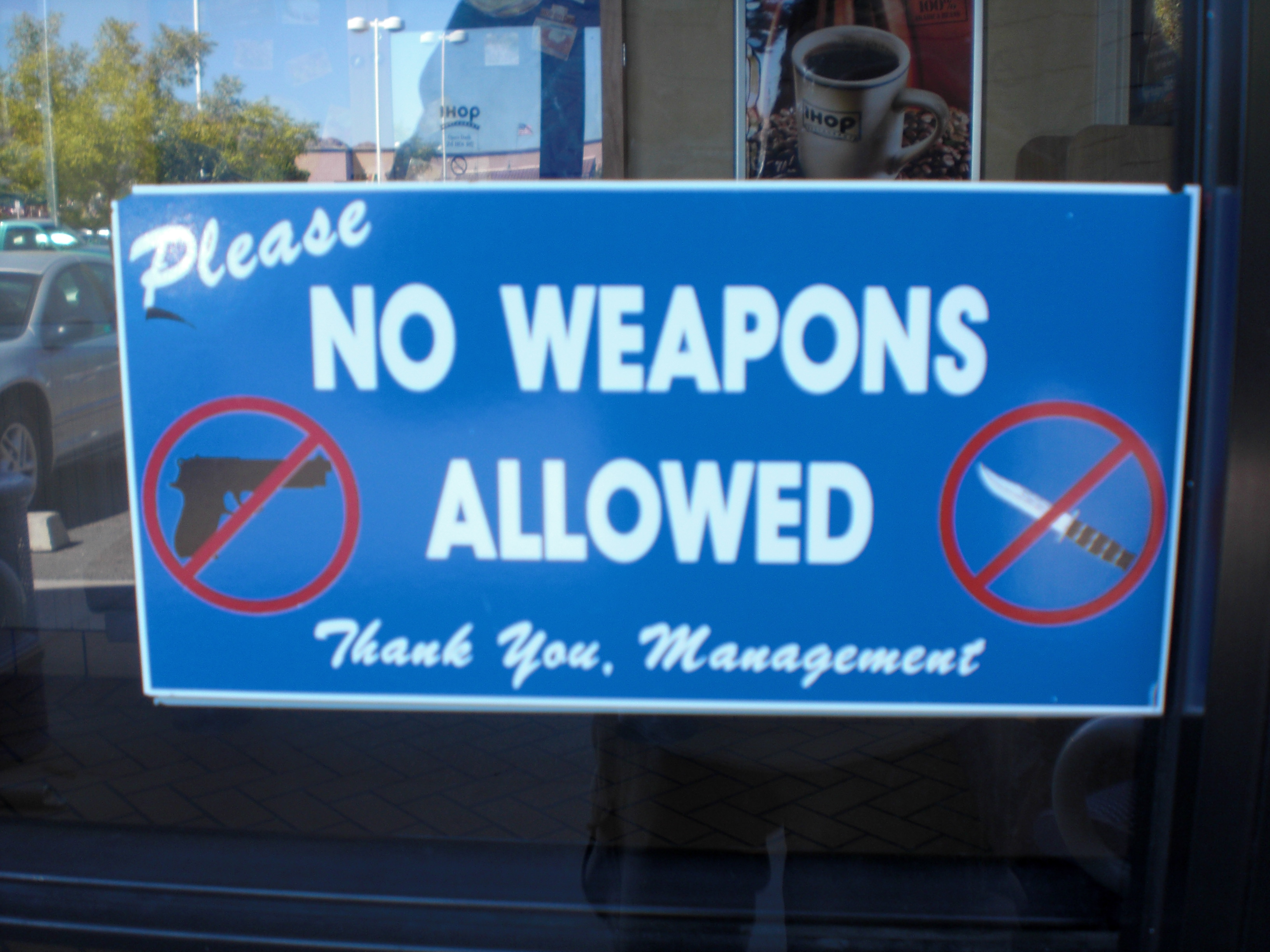 Waffenverbotsschild an einem Schnellrestaurant in Phoenix, Arizona. Bild: Yodokus - wikipedia.org