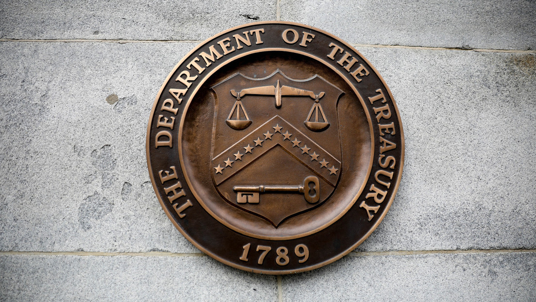 Auf dem Symbolbild: Logo des US-Finanzministeriums Bild: Gettyimages.ru / Yasin Ozturk/Anadolu Agency