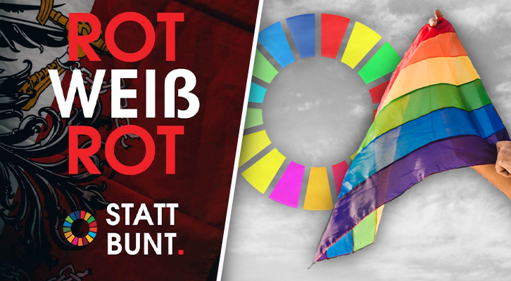 Bild: Pride-Flagge: Freepik; RWR-Sujet: Telegram / Martin Rutter; Collage: Wochenblick / Eigenes Werk