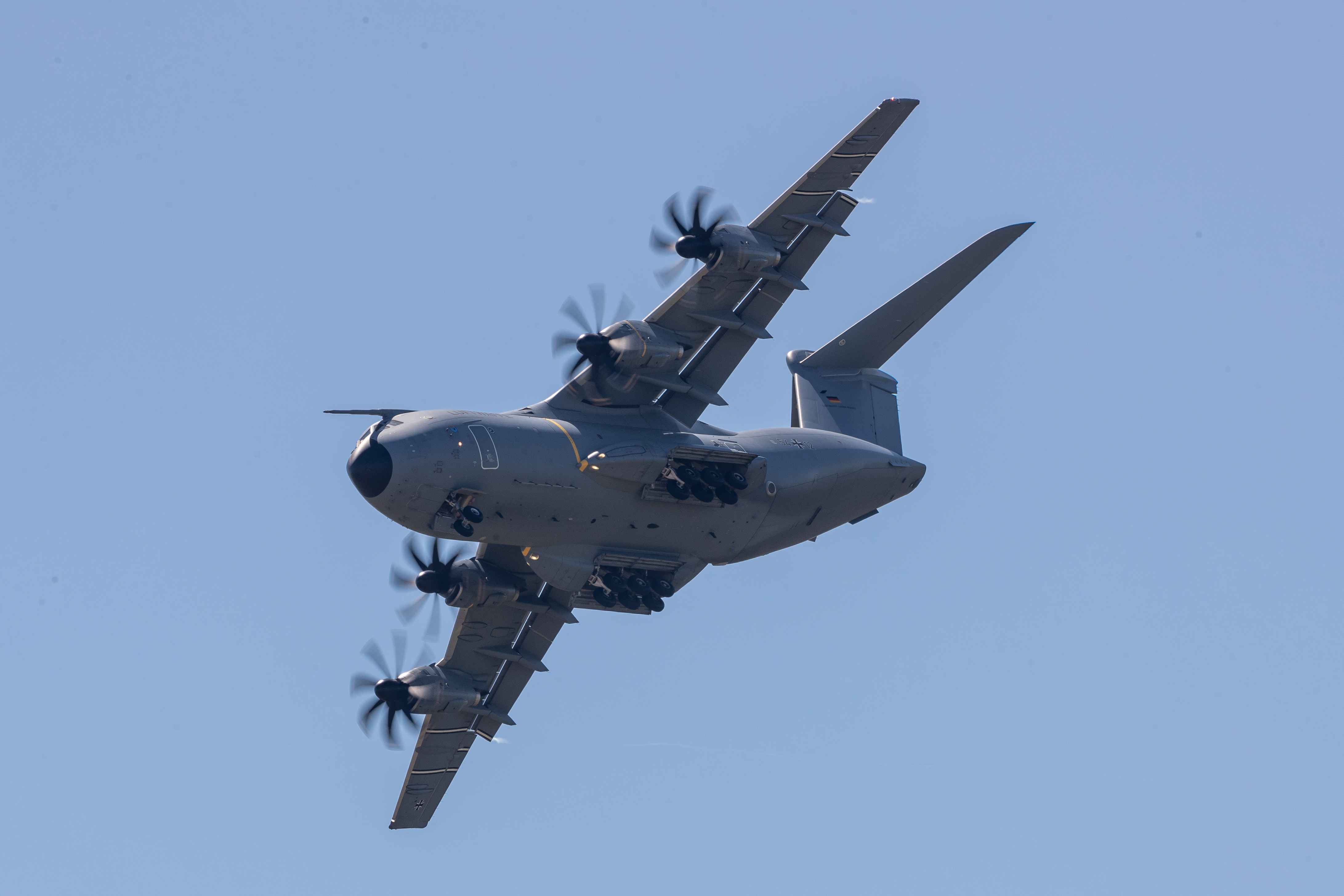Übungsflug des Transportflugzeugs A400M im Rahmen der ILA 2022 auf dem Gelände des BER, am 21.06.2022. Bildrechte: Bundeswehr/Jane Schmidt