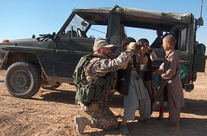 Bundeswehrsoldat mit afghanischen Kindern. Bild: PIZ Kunduz