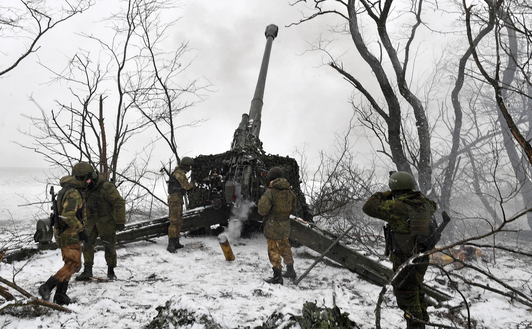 Archivbild: Russische Artilleristen beschießen die Stellungen der ukrainischen Streitkräfte mit Msta-B-Haubitzen am südlichen Frontabschnitt Bild: RIA Nowosti / Sputnik