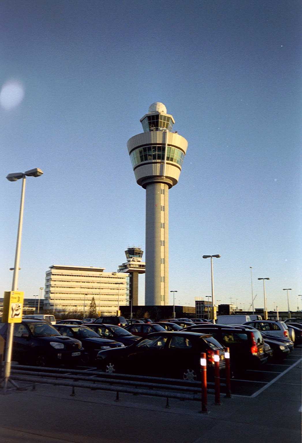Flugverkehrskontrolltürme (Tower) am Amsterdamer Flughafen Schiphol, Niederlande