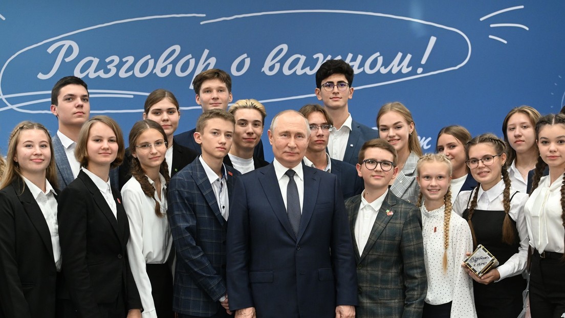 Wladimir Putin mit Schülern im Dorf Turginowo, Gebiet Twer, 1. September 2023 Bild: Sputnik / Jekaterina Tschesnokowa, RIA Nowosti