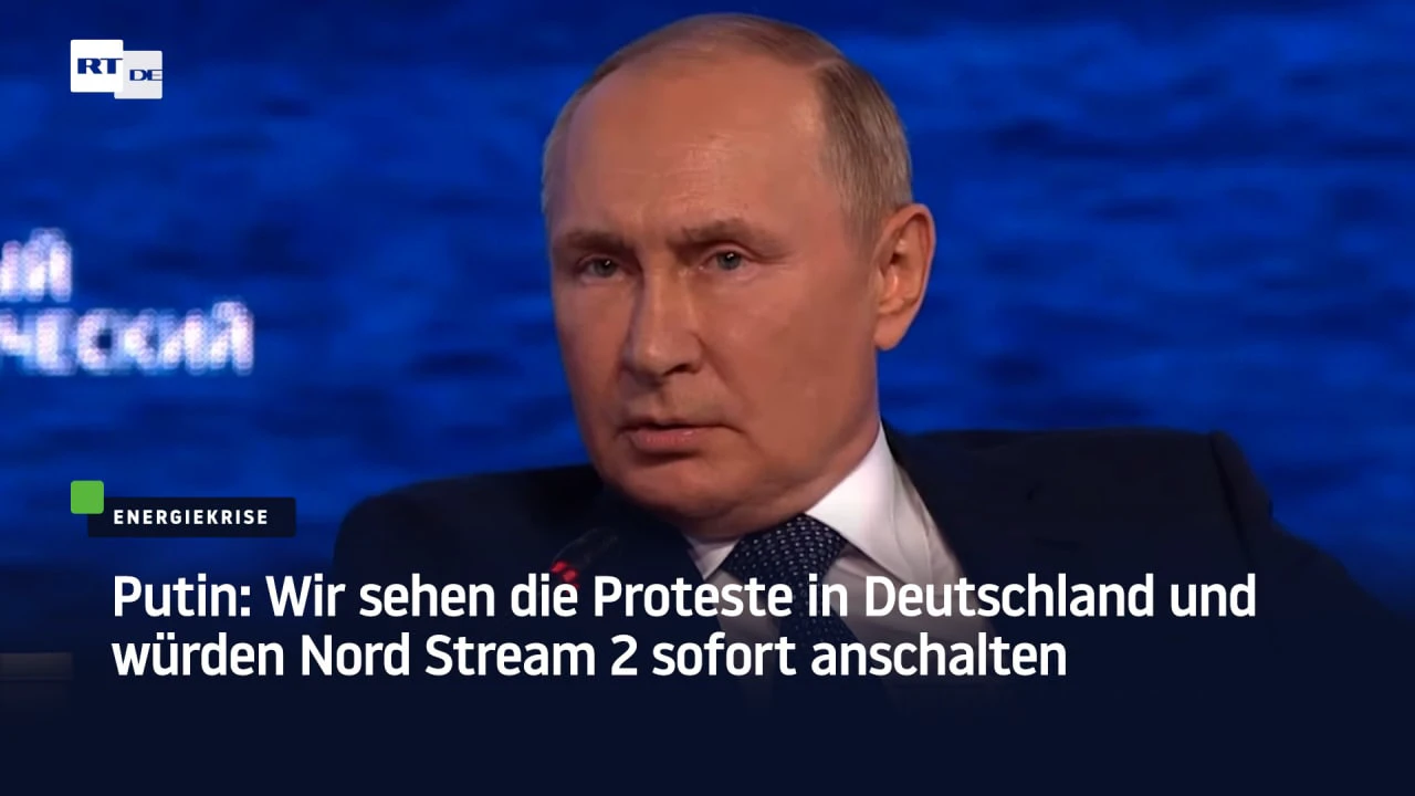 Zurück zu Putin: Wir sehen die Proteste in Deutschland und würden Nord Stream 2 sofort anschalten